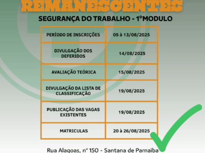 📑 Atenção Estudantes do 9° ano ! ✅ Estes são os cursos disponíveis na Etec Bartolomeu – Fazendinha. Há mais de 10 anos formando profissionais técnicos na região de Santana de Parnaíba. 🗓️ Não perca […]