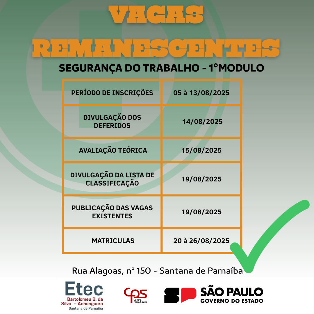 As inscrições para o processo seletivo para as Etecs do Centro Paula Souza (CPS) para o 1º semestre de 2026 iniciam-se no dia 10 de setembro e encerram-se no dia 3 de novembro. O exame será aplicado […]